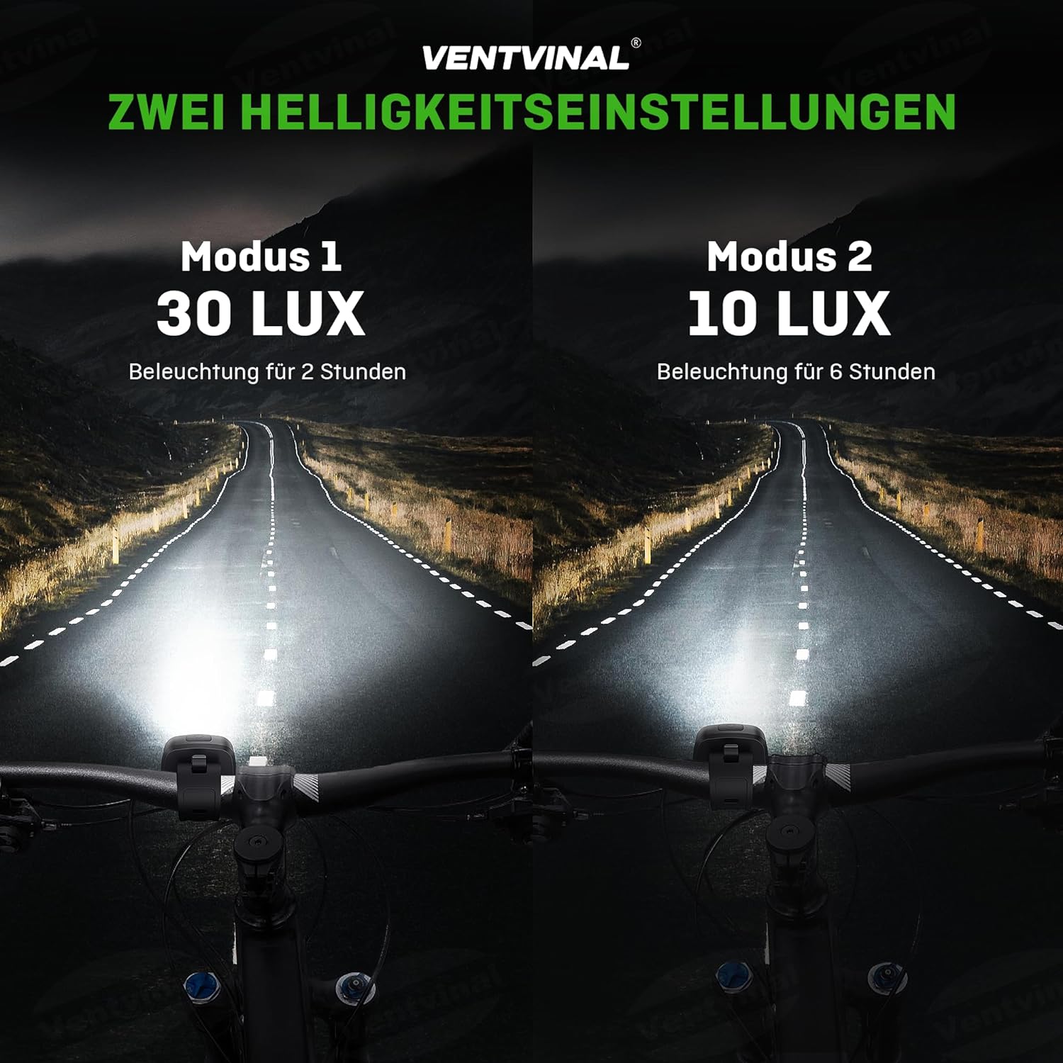Ventvinal LED Fahrradlicht Vorne,Fahrradbeleuchtung 30 LUX,StVZO-Zugelassen,Fahrrad Frontlicht Fahrradlampe IPX5 wasserdicht,USB Typ C